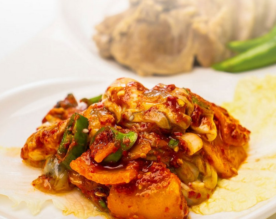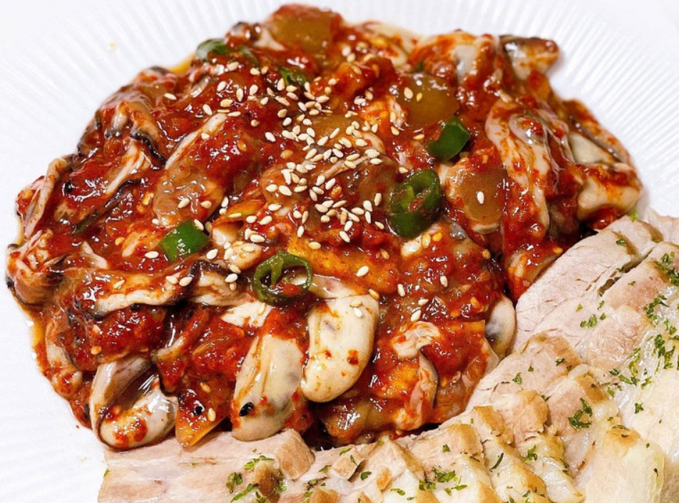 보쌈과 함께 곁들이는 보쌈 굴무침은 일반 굴무침보다 양념의 강도가 중요합니다.