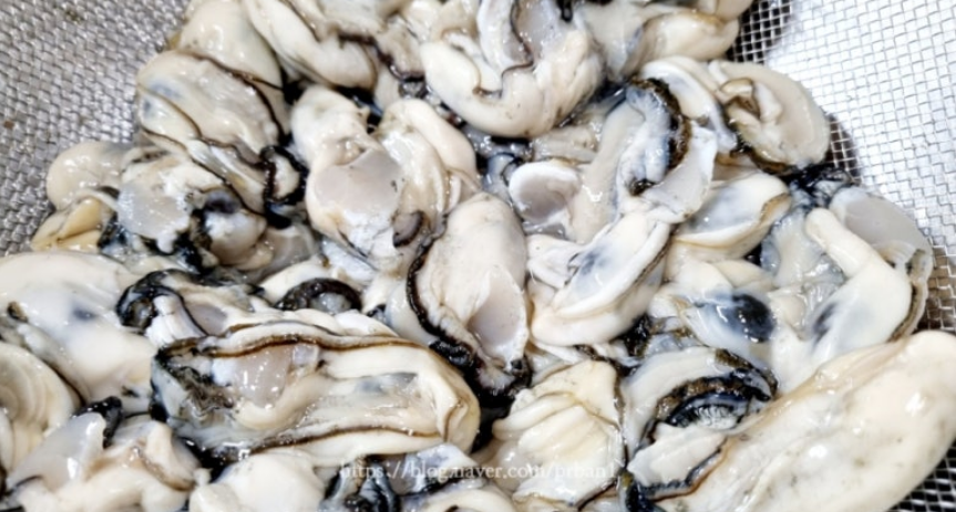 - 굵은소금물 활용: 굴을 체에 담고 굵은소금 1~2큰술을 넣은 뒤, 찬물에 2~3회 살살 흔들어 씻습니다. 굴의 점액질과 불순물이 제거됩니다. Tip: 굴을 세게 주무르면 상처가 나서 맛있는 즙이 빠지고 비린내가 날 수 있으니, 살살 다뤄주세요.